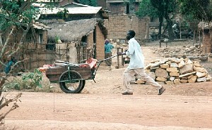 Some photos from the Central African Republic I worked with the United Nations mission in the Central African Republic from July 1998 to February 2000 A beef runner taking the beef from the butcher to the markets Outside the Bamag Supermartket on Avenue Boganda, Bangui Statue of former president Barthelemy Boganda A French soldier takes up position after the attempted Coup-d'etat in 2002 A view east towards the river Ubangui from PK Zero (PK 0) Wood carvers at the Place d'Artisans on Avenue de L'Independance